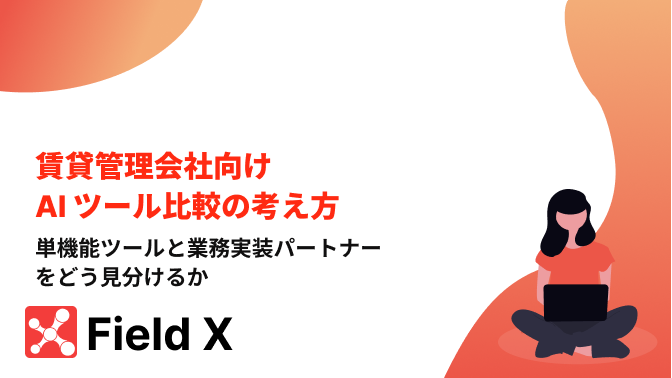 AIツールは、機能の多さよりも、業務に定着するかで選ぶほうが失敗しにくくなります。Field X では、単機能ツールと業務実装パートナーの違いを踏まえ、賃貸管理会社に合う選定基準を一緒に整理します。