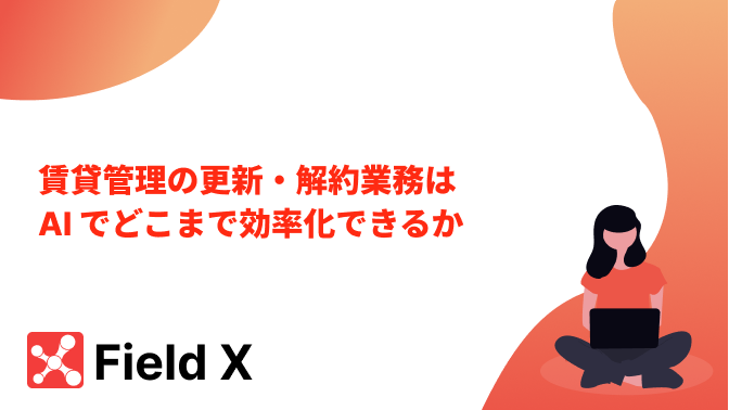 賃貸管理の更新・解約業務は、AIで全部を置き換えるのではなく、工程を分けて標準化するところから始めるのが現実的です。更新対象の抽出、案内文の作成、進捗管理、履歴整理まで含めて見直したい場合は、Field Xにご相談ください。